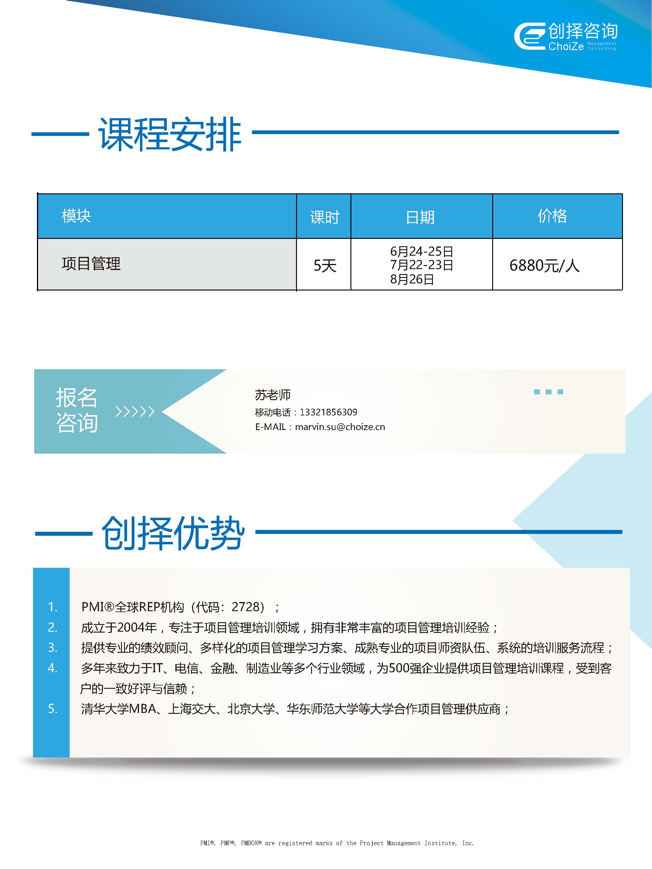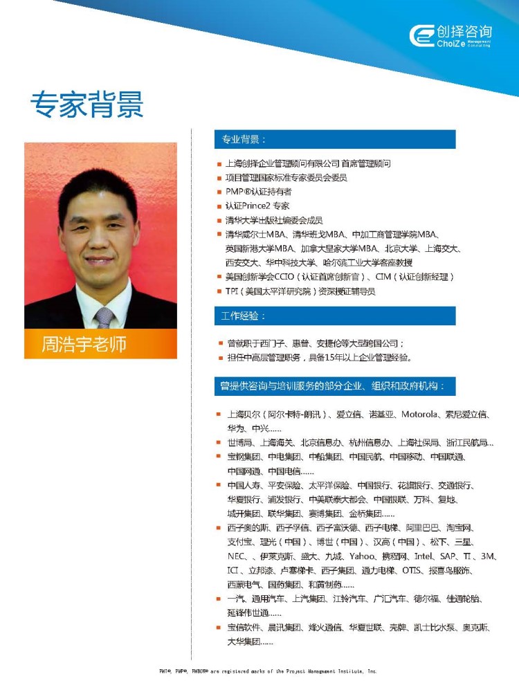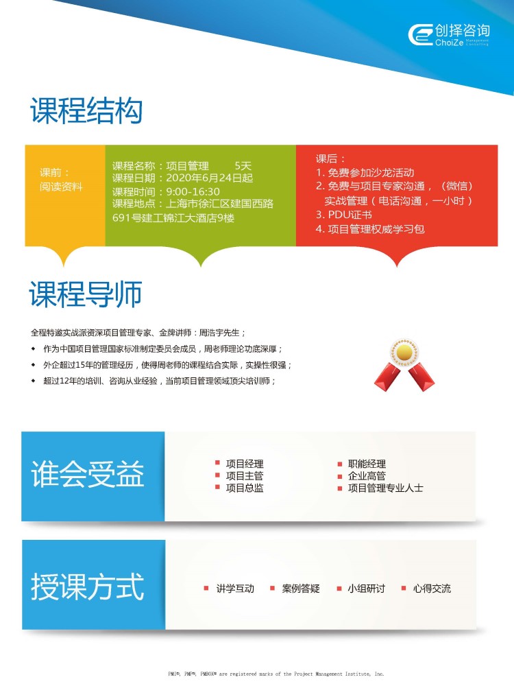 CopyRight 2020 上海创择企业管理顾问有限公司//PMI®, PMP®, PMBOK® are registered marks of the Project Management Institute, Inc.